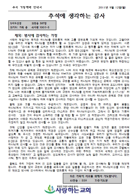 사 랑 방 > 사랑방 공지사항 > 추석명절 가정예배안내지!