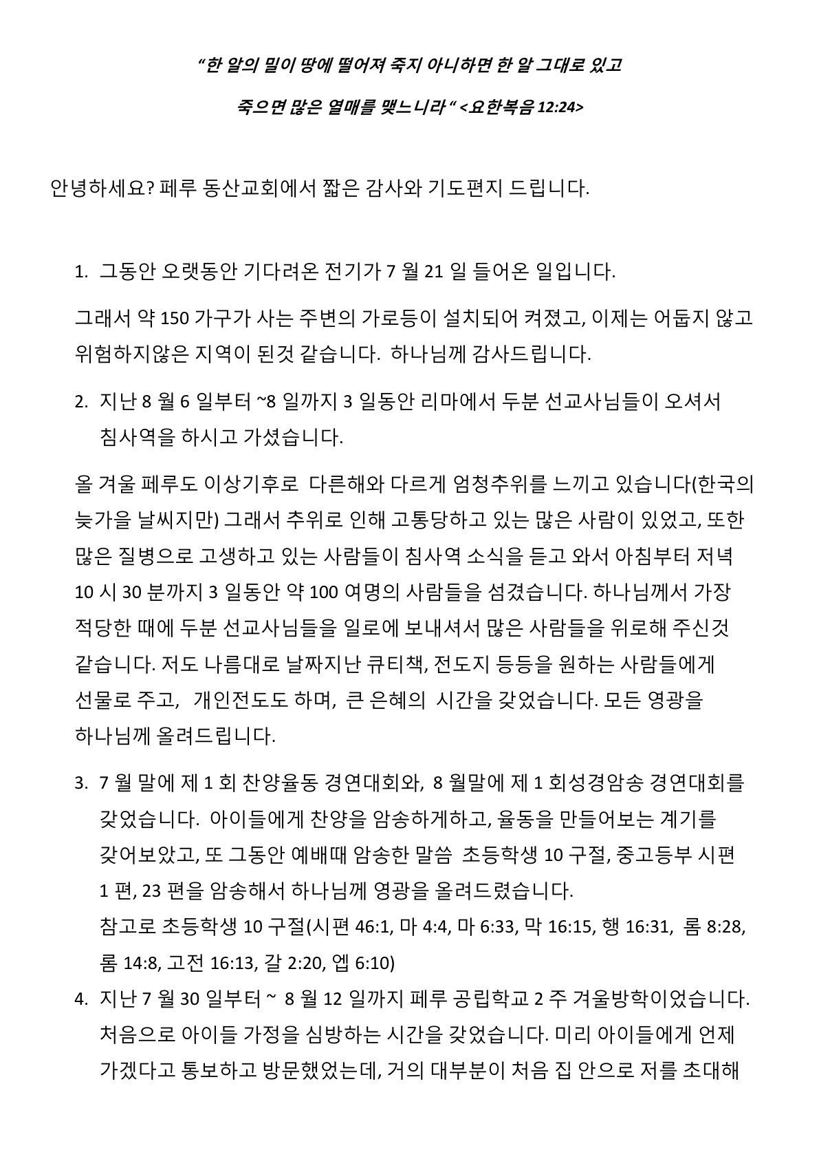 페루 황인미 선교사님 선교편지
