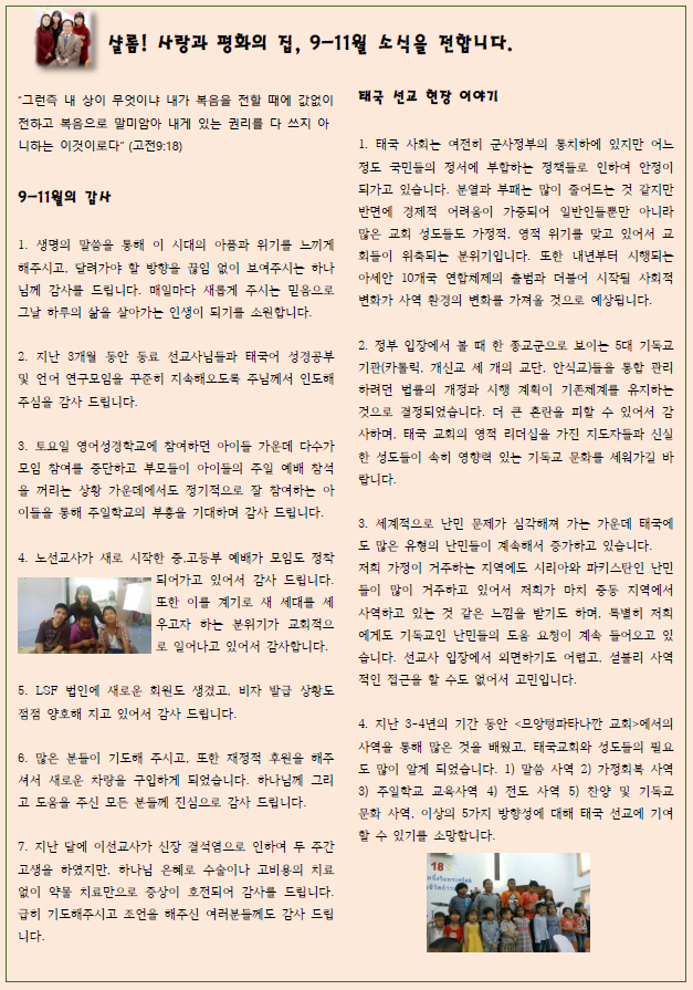 태국 이창운 선교사님 10월 편지!