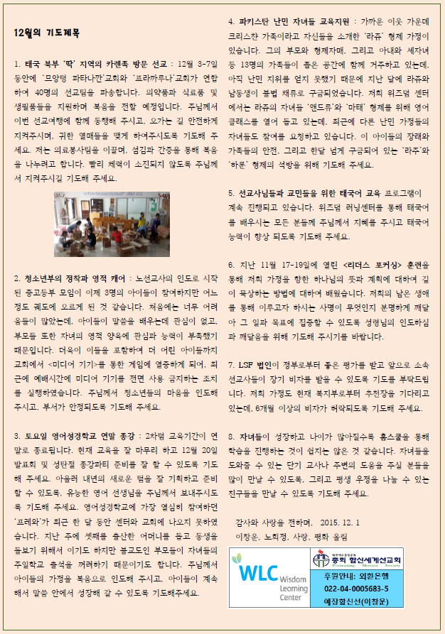 선교사역 > 선교편지 > 2015년 12월 편지