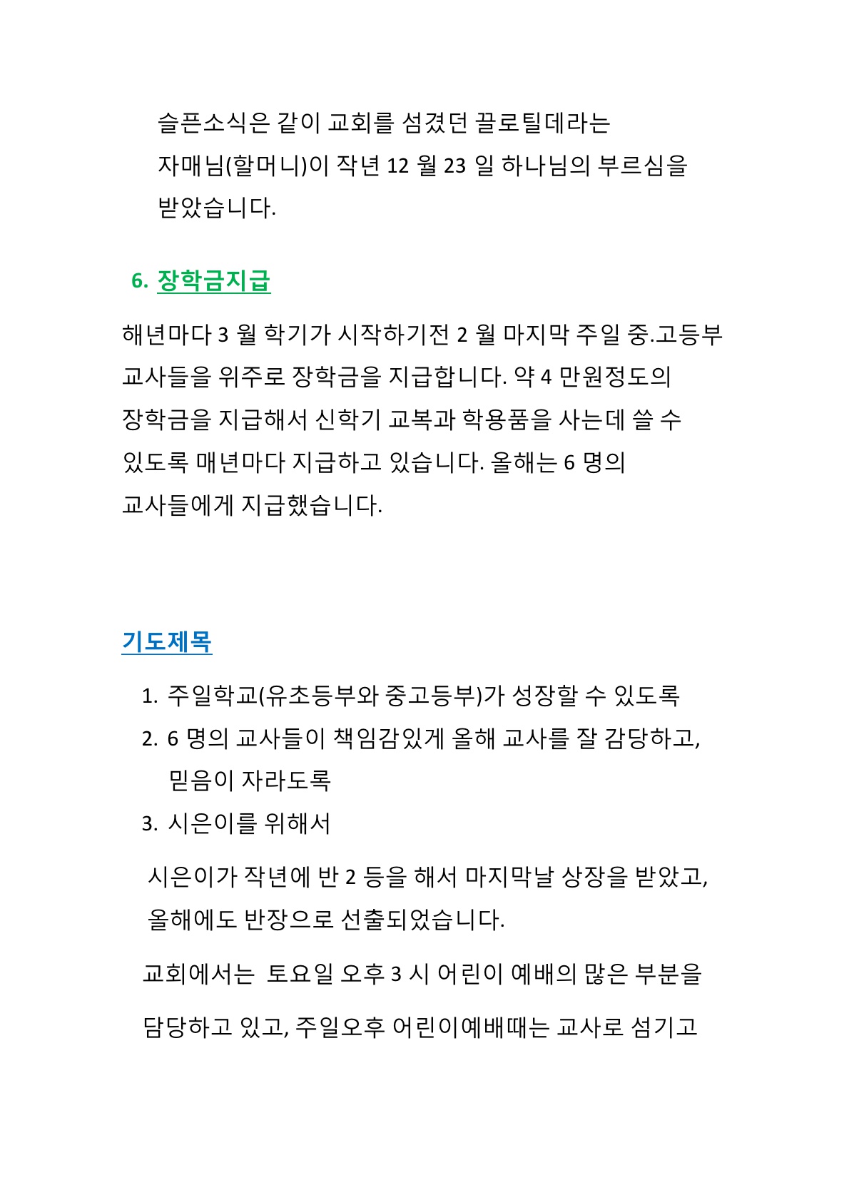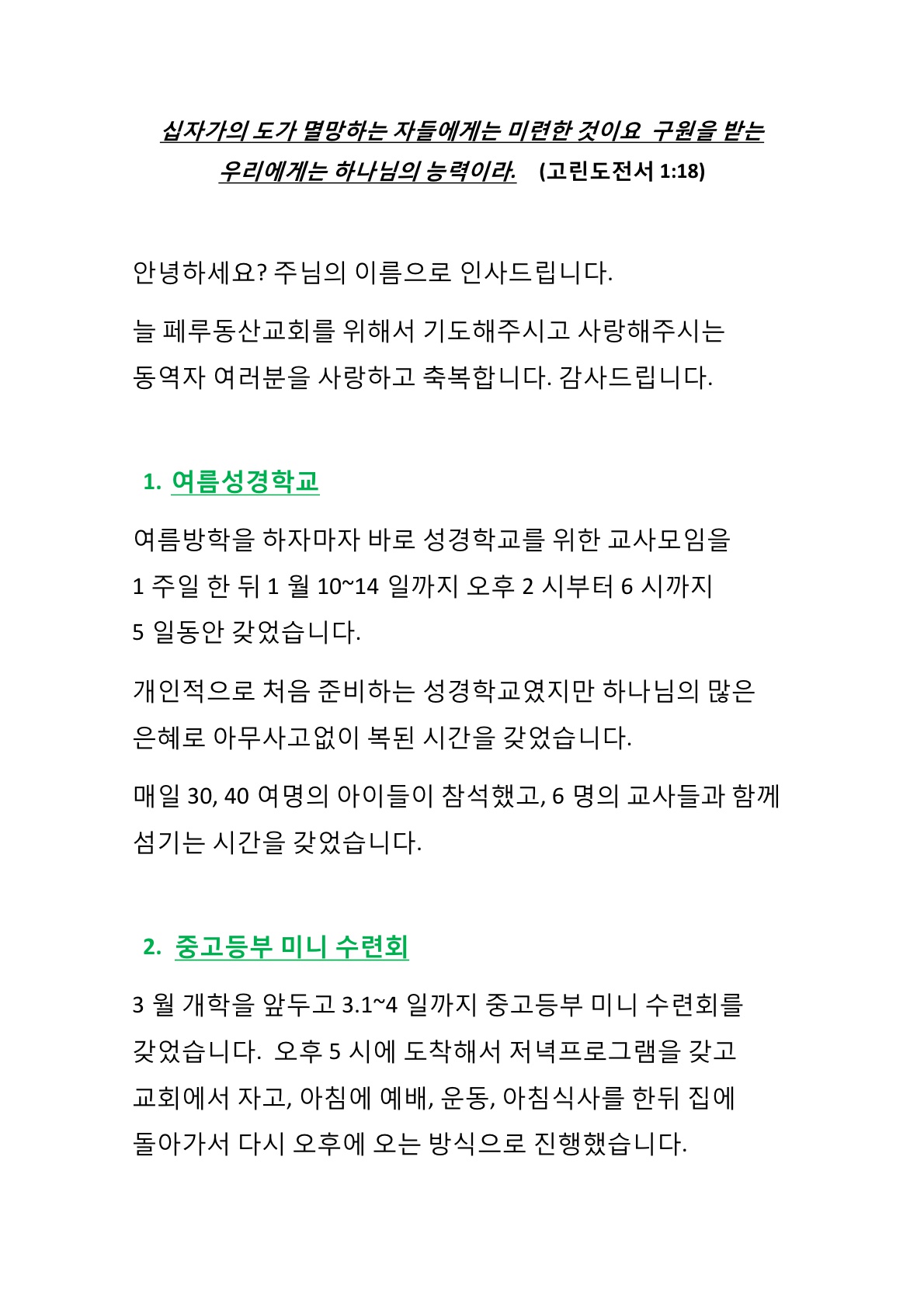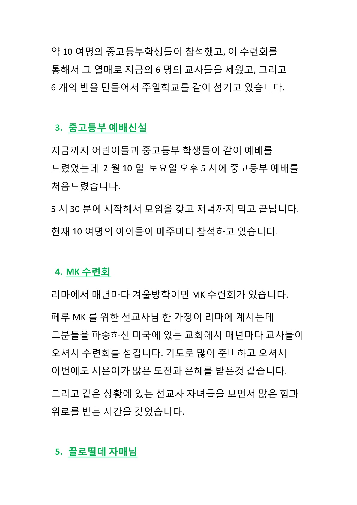박종영선교사님 선교편지입니다.