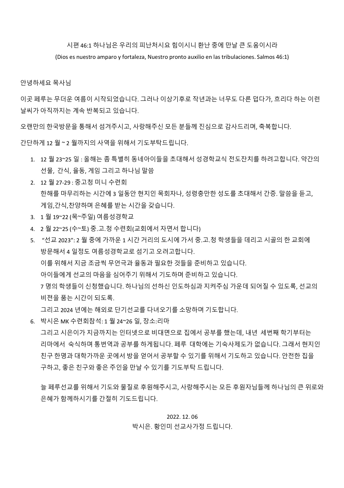 박종영선교사님 선교편지입니다.