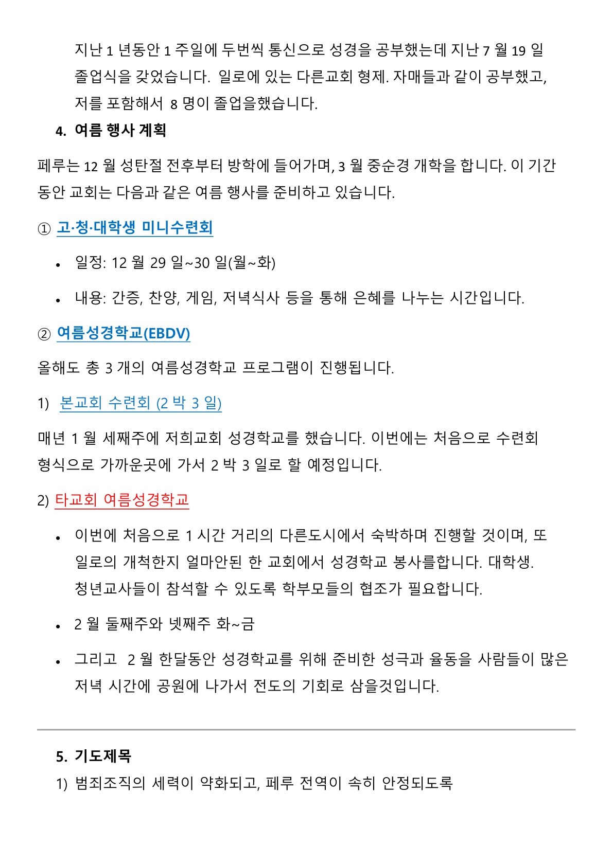 선교보고및 기도편지