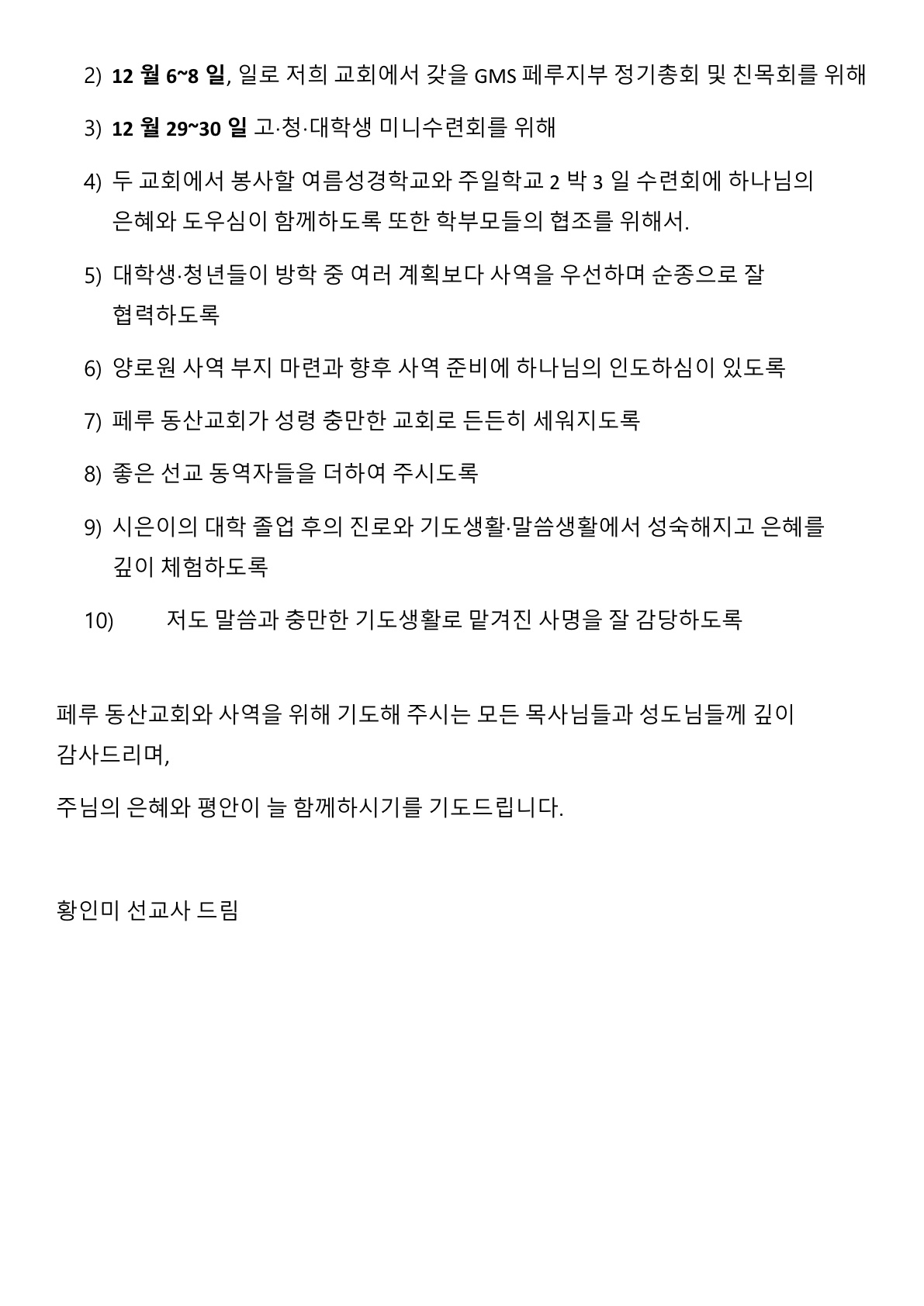 황인미선교사님 선교편지~